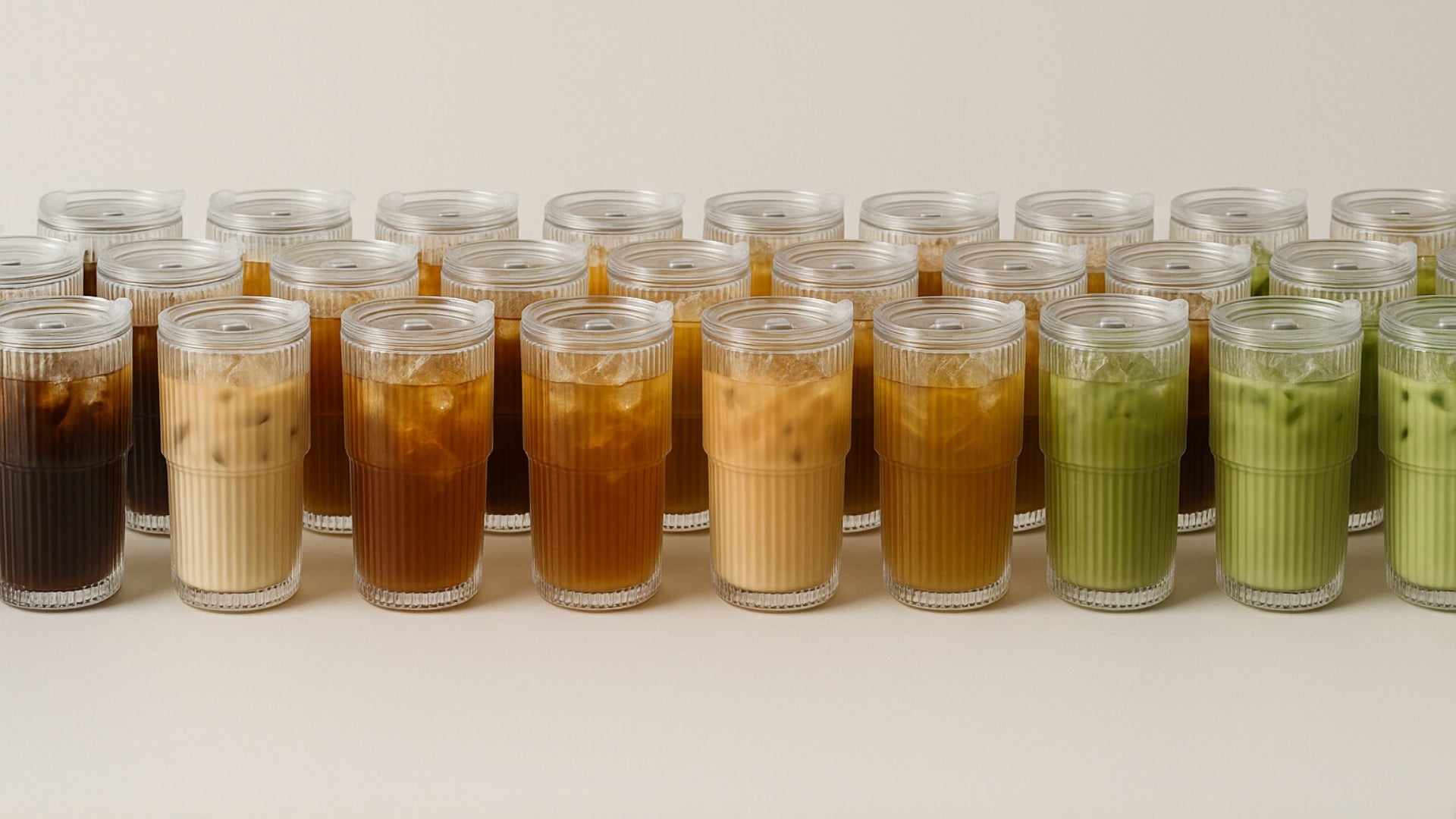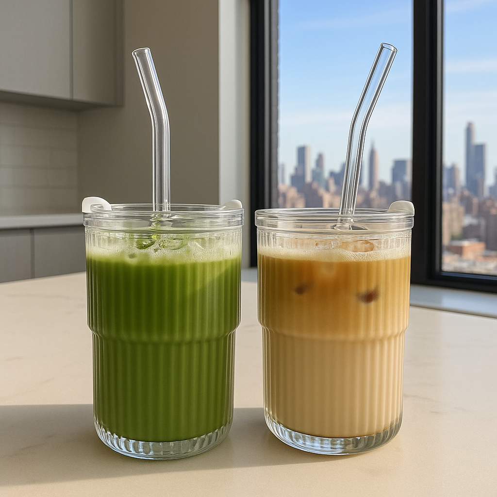 For matcha girlys, latte lovers, and iced-coffee obsessives. Ribbed glass, spill-safe lids, and the perfect aesthetic for everyday sipping.